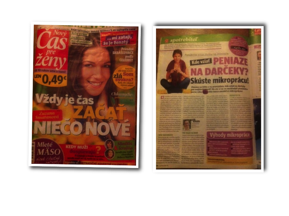Ako zarobiť na vianočné darčeky – napríklad mikroprácou Napísané 3. decembra 2013 , autor: admin Minulý týždeň ste nás mohli nájsť aj v Novom Čase/pre ženy – takto veľmi sa tešíme :))))))))) Ďakujeme Gabike a Zuzke ÁNo na vianočné darčeky sa dá zarobiť aj mikroprácou…
